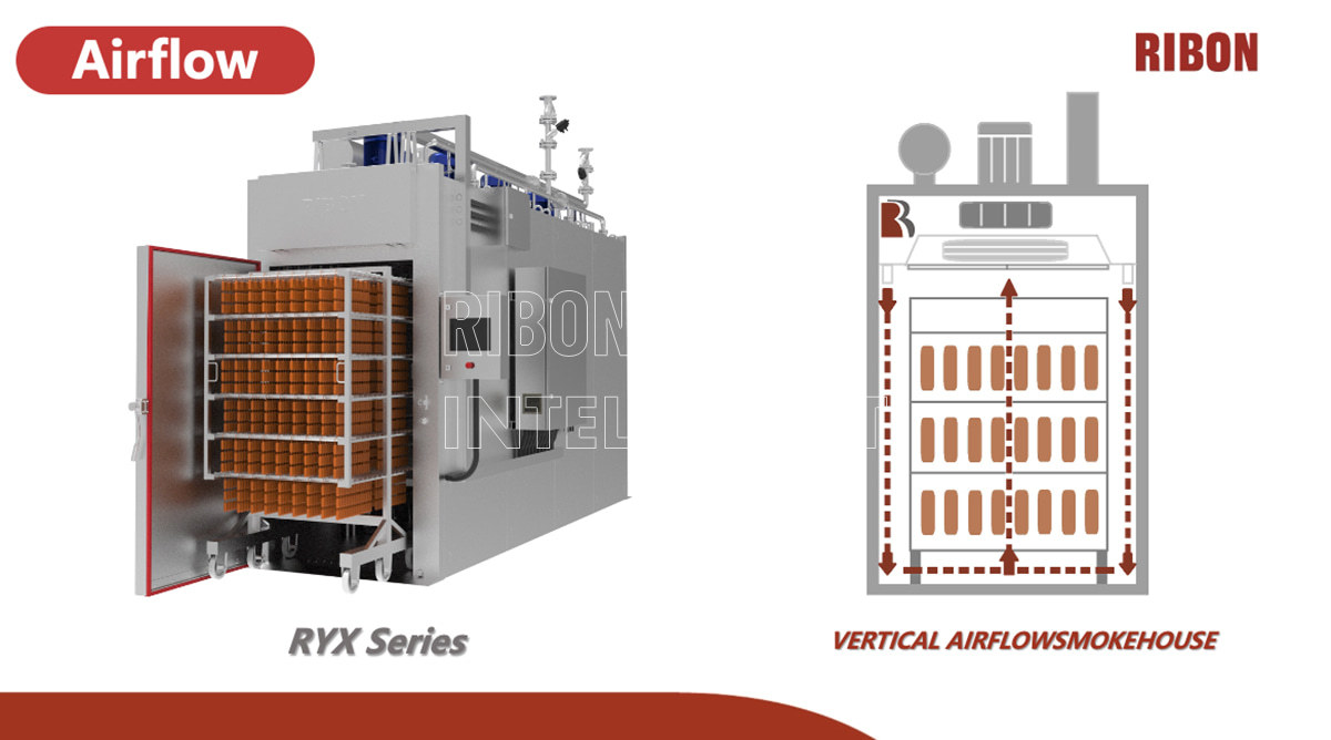 تقنية RUN-FLOW الحصرية تضمن تدفق هواء رأسي موحد، مما يحافظ على استقرار درجة الحرارة والرطوبة أثناء المعالجة لضمان لون ونكهة المنتج متسقين.